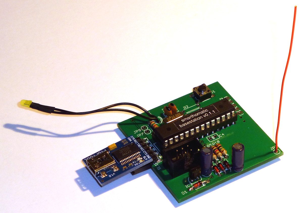 The base station is the master of your SHC network. It communicates to every other device and controls it. It's connected to a PC (or router or NAS etc.) and serves as gateway to your normal home (W)LAN. The data connection is typically implemented through a USB-to-serial converter.
