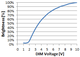 The brightness calibration table is used to adjust the voltage output to make the controlled power supply / lamp produce a linear brightness curve. For example, my specific CFL tubes in combination with the OSRAM HF Dim T8 already produced a 80% brightness using a medium control voltage of just 5.5V.