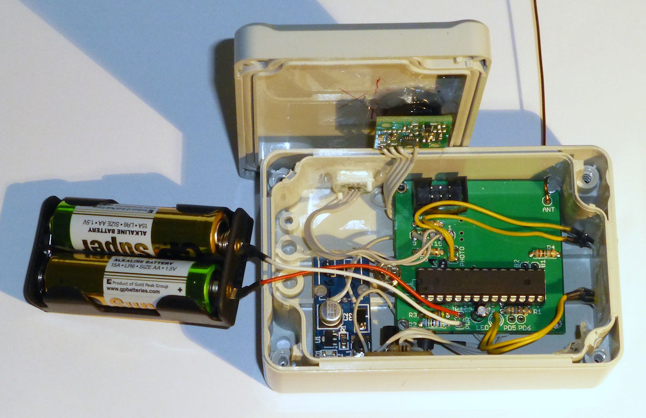Typically two batteries are used to power the environment sensor. They provide a voltage of 2.2 to 3V. The SRF02 (and maybe other sensors in the future) needs a higher voltage of 5V. To make it possible to use the SRF02 with only two batteries, a voltage converter is supported to produce the needed voltage.